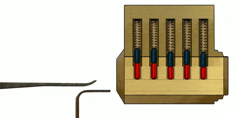 - Repeat the same steps of gently lifting each pin until you once again locate another pin that feels stiff and difficult to move. As before, gently continue to raise that pin until you feel a slight rotation on the plug or hear an audible click.
