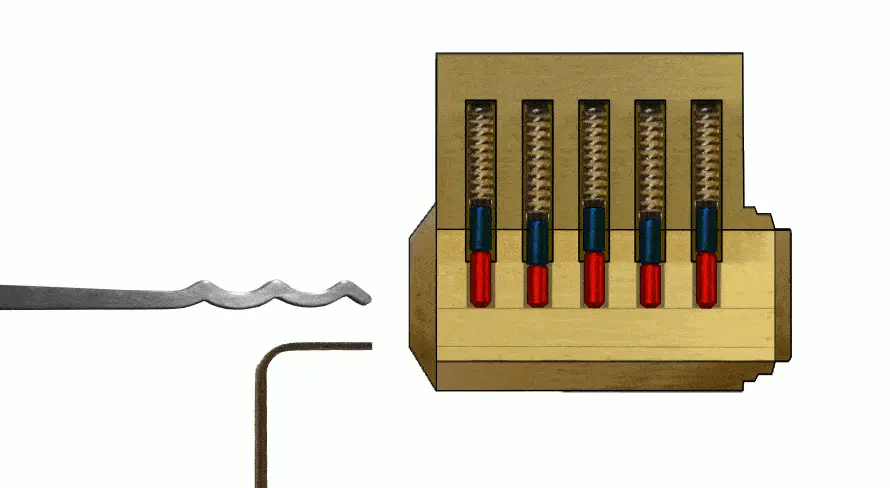The easiest way to pick a lock. Raking is a very volatile and radical style of picking whose goal is to bump as many pins to the shear line as possible in the quickest amount of time. While it can be a lot of fun and is a very quick method of bypassing many basic locks, it will only get you so far and can become almost worthless when you start getting into locks with additional security features such as sidebars and security pins.